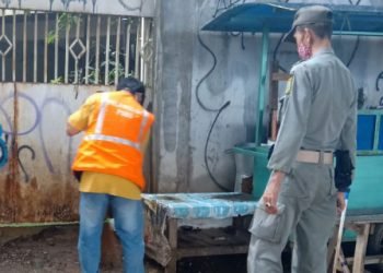 Petugas gabungan dari unsur Satpol PP, TNI dan Polisi, memberikan sanksi kerja sosial kepada 11 warga yang terjaring giat tertib...