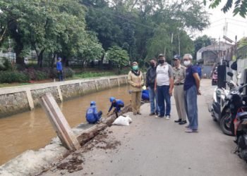 Sebanyak 30 petugas gabungan melakukan perbaikan turap dan tanggul Kali Baru di wilayah RT 05/01 Kelurahan Tengah, Kramat Jati, Jakarta...