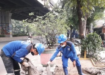 Suku Dinas Sumber Daya Air (SDA) Kepulauan Seribu melakukan perbaikan saluran air di Jalan Pantai Selatan, RT 02/01, Kelurahan Pulau...