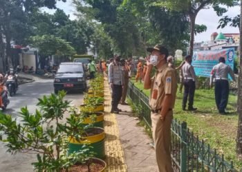 Petugas gabungan dari jajaran Kecamatan Grogol Petamburan dan Kelurahan Tanjung Duren mempercantik sisi Kali Sekretaris, RW 07, Kelurahan Tanjung Duren...