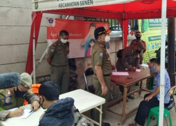Sebanyak 52 orang yang terjaring giat tertib masker di Pasar Senen, Jakarta Pusat, dikenai sanksi kerja sosial membersihkan sampah dan...
