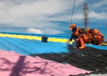 Proses pengecatan atap rumah warga yang berada di kawasan flyover Lenteng Agung, Jakarta Selatan, saat ini progresnya sudah mencapai sekitar...