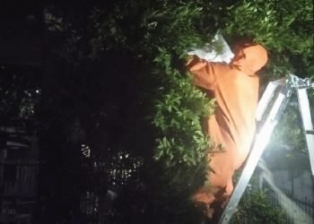Petugas Sektor 8 Suku Dinas Penanggulangan Kebakaran dan Penyelamatan (Sudin Gulkarmat) Jakarta Utara dan Kepulauan Seribu berhasil mengevakuasi sarang tawon...