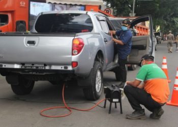 Puluhan kendaraan roda empat ikut dalam uji emisi gratis yang diselenggarakan Dinas Lingkungan Hidup DKI, di Tanjung Barat, Jakarta Selatan,...