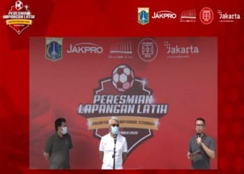 Gubernur DKI Jakarta, Anies Baswedan meresmikan dua lapangan latih Jakarta International Stadium (JIS), Kebon Bawang, Tanjung Priok, Jakarta Utara, secara...