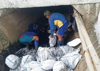 Suku Dinas Sumber Daya Air (SDA) Jakarta Utara melakukan pengurasan gorong-gorong saluran penghubung (Phb) Kelapa Kopyor di Kelapa Gading Timur,...