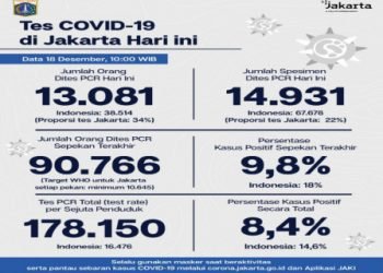 Perkembangan COVID-19 di Jakarta Per 18 Desember 2020