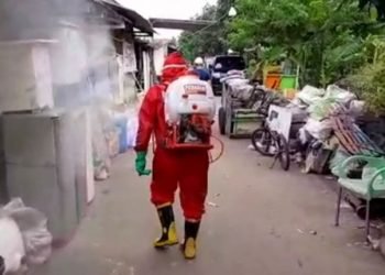 Suku Dinas Penanggulangan Kebakaran dan Penyelamatan (Sudin Gulkarmat) Jakarta Barat hari ini melakukan penyemprotan cairan disinfektan di lingkungan warga JL...