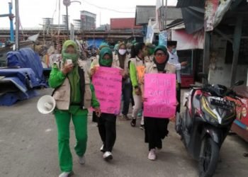 Kelurahan Cilincing, Jakarta Utara mengkampanyekan gerakan 3 M (Menggunakan Masker, Menjaga Jarak dan Mencuci Tangan) di lingkungan permukiman warga RW...