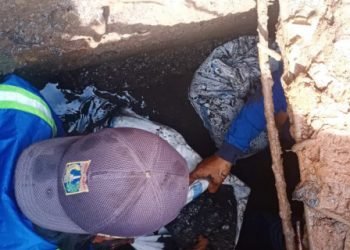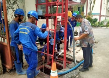 Petugas Bersihkan Saluran Air Jl Jembatan Besi XII