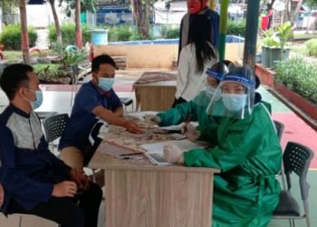 Sebanyak 45 warga RW 01 sampai 05, Kelurahan Lenteng Agung, Jagakarsa, Jakarta Selatan, mengikuti swab test di RPTRA Taman Lenteng,...