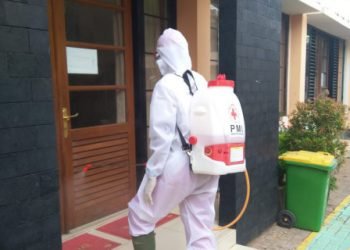 Kantor Transit Suku Dinas (Sudin) Pendidikan Kabupaten Kepulauan Seribu di Sunter, Jakarta Utara disemprot disinfektan. Penyemprotan disinfektan ini dilakukan oleh...