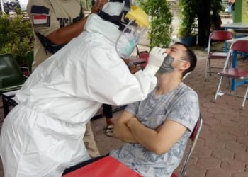 Sebanyak 33 warga RW 09,13 dan 14, Kelurahan Bintaro, Jumat (4/12), mengikuti swab test yang digelar Puskesmas Kecamatan Pesanggrahan, Jakarta...