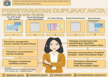 Bagi warga DKI Jakarta yang ingin menduplikasi akta kelahiran karena hilang atau rusak, Dinas Kependudukan dan Pencatatan Sipil (Dukcapil) DKI...