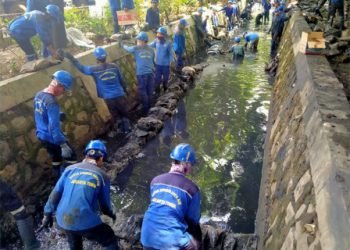 Saluran penghubung Pulo Nangka di RW 08, Kelurahan Pulogadung, Kecamatan Pulogadung dibersihkan Satgas Sumber Daya Air (SDA) Jakarta Timur, Rabu...