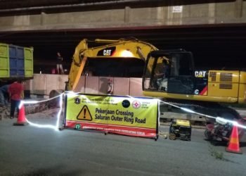 Suku Dinas Sumber Daya Air (Sudin SDA) Jakarta Barat membangun crossing saluran air di Jl Lingkar Luar Barat, Kembangan. "Pembangunan...