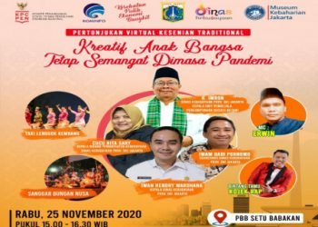 Dinas Kebudayaan DKI Jakarta berkolaborasi dengan Kementerian Komunikasi dan Informatika (Kominfo) Republik Indonesia menggelar pertunjukan virtual kesenian tradisional pada Rabu,...