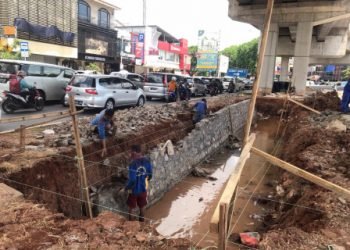 Suku Dinas Sumber Daya Air (SDA) Jakarta Utara terus mengebut pembangunan kolam olakan di Jalan Boulevard Raya Kelapa Gading, Kelapa...