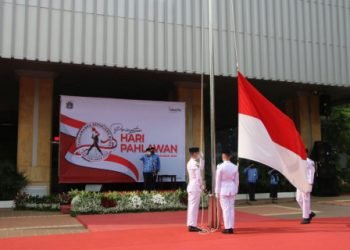 Pemerintah Provinsi DKI Jakarta menyelenggarakan upacara bendera dalam rangka Memperingati Hari Pahlawan ke-75 tahun 2020 di Halaman Blok G Balai...