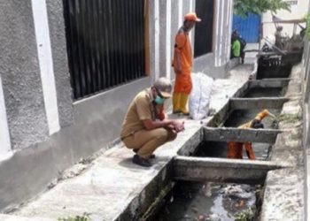 Saluran drainase sepanjang 300 meter di Jl Bunga Dalam I, RW 09, Kelurahan Palmeriam, Matraman, Jakarta Timur dikuras petugas. "...
