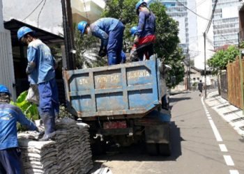 Sebanyak 765 karung lumpur hasil pembersihan saluran selama dua hari di Kecamatan Matraman, Jakarta Timur berhasil diangkut oleh Satgas Sumber...