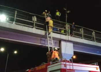 Petugas Sudin Penanggulangan Kebakaran dan Penyelamatan (Gulkarmat) Jakarta Timur berhasil mengevakuasi seorang WNA Sudan yang diduga hendak melakukan aksi bunuh...