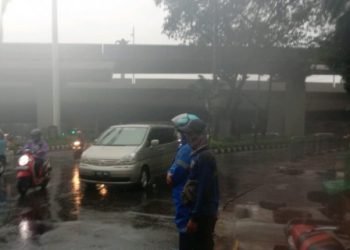 Enam Satgas Sudin Sumber Daya Air (SDA) Kecamatan Pancoran, Jakarta Selatan, Senin (19/10) sore, disiagakan untuk memantau genangan di kecamatanJalan...