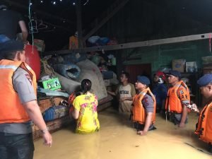 Banjir di Cempaka Banjarbaru, Satbrimob Polda Kalsel Turun Bantu Para Warga