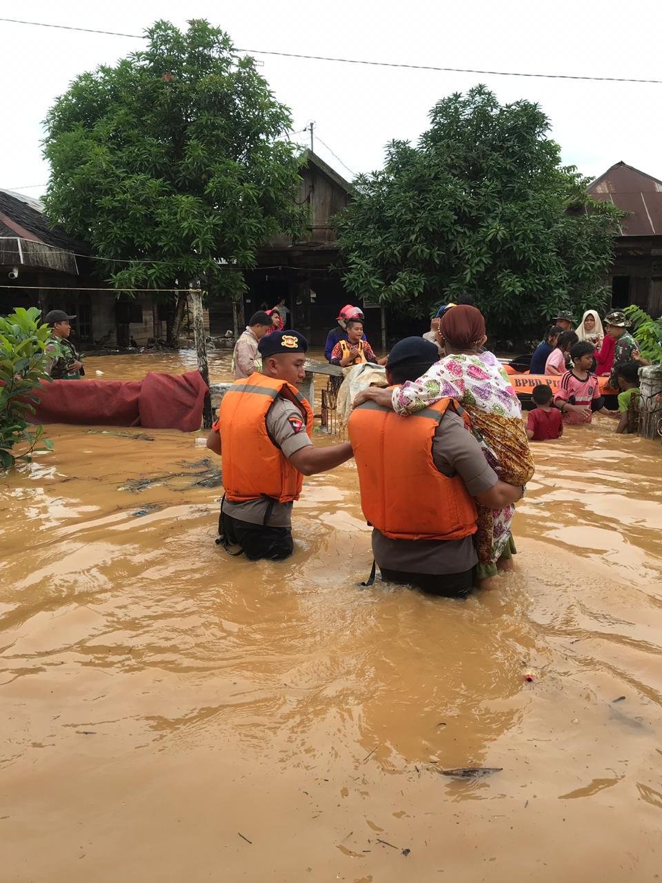 Dengan misi Operasi Aman Nusa II, satu tim Satbrimob beranggotakan 12 orang yang dipimpin Dansat Brimob Polda Kalsel Kombes Pol Ronny Suseno, SIK. diwakili Ipda Suwartoyo, SE. turun ke lokasi banjir yang saat ini air mulai berangsur surut meski ancaman hujan turun kerap masih menghantui terlebih melihat langit masih mendung.