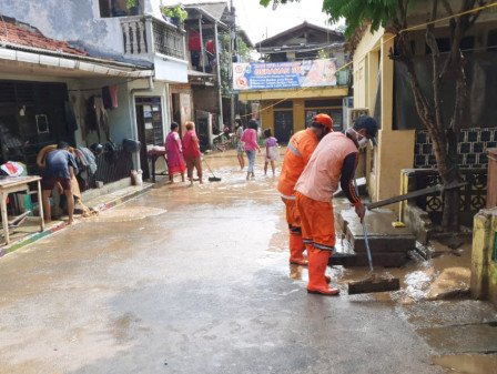 Dia menambahkan, untuk lokasi lainnya di RW, 01, 03, 06 genangan sudah surut total sejak pukul 10.00. Saat ini, warga dibantu 10 petugas PPSU kelurahan sedang melakukan pembersihan lumpur dan sampah sisa banjir di lingkungan mereka.