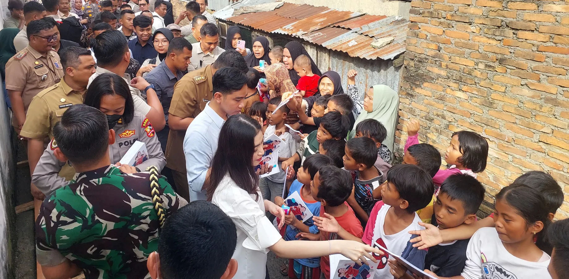 Sejalan dengan visi Asta Cita Presiden Prabowo untuk menciptakan kehidupan yang harmonis, adil, dan makmur bagi seluruh rakyat Indonesia, di sela rangkaian kegiatan kunjungan kerjanya ke Provinsi Sumatera Utara, Wakil Presiden (Wapres) Gibran Rakabuming didampingi Ibu Selvi Ananda, menyempatkan diri berkunjung ke Gang Dame, Kelurahan Bandar Selamat, Kota Medan, pada Senin (23/12/2024).