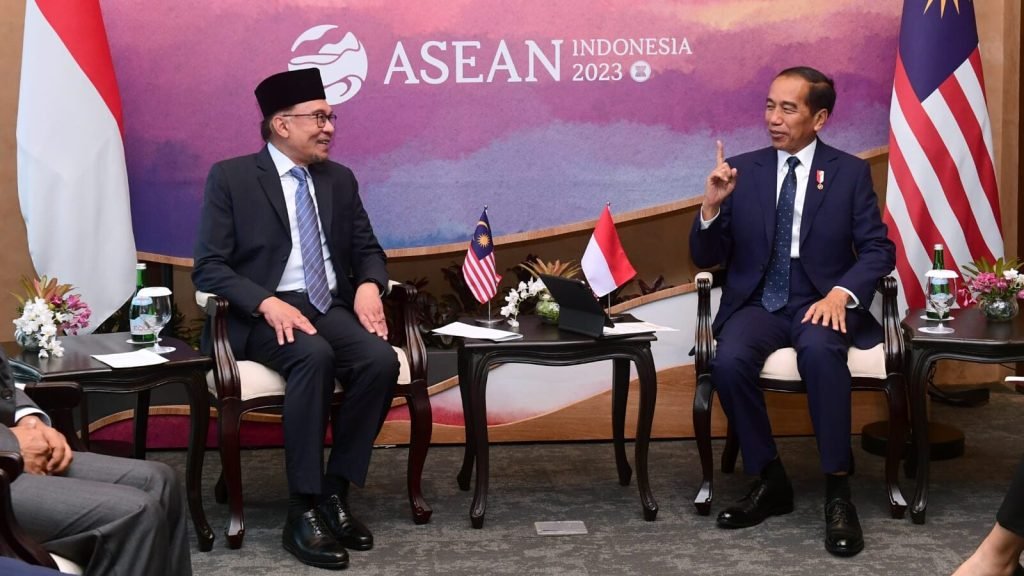 Presiden Joko Widodo dan Perdana Menteri (PM) Malaysia Anwar Ibrahim menggelar pertemuan bilateral di Hotel Meruorah, Labuan Bajo, Kabupaten Manggarai Barat, Provinsi Nusa Tenggara Timur pada Selasa, 9 Mei 2023. Dalam pertemuan tersebut, Presiden Jokowi menekankan peningkatan optimalisasi perlindungan pekerja migran Indonesia di Malaysia.