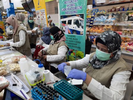 Badan Pengawas Obat dan Makanan (BPOM) DKI Jakarta bersama Suku Dinas Ketahanan Pangan, Kelautan dan Pertanian (Sudin KPKP) serta Sudin Kesehatan Jakarta Barat melakukan pengawasan pasar swalayan di Kembangan, Jakarta Barat.