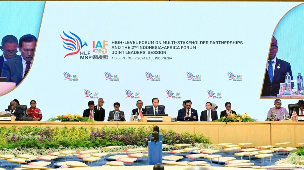 Presiden Joko Widodo secara resmi membuka High-Level Forum on Multi-Stakeholder Partnerships (HLF MSP) dan Indonesia-Africa Forum (IAF) ke-2 Joint Leaders Session 2024, yang digelar di Hotel Mulia Nusa Dua, Bali, pada Senin, 2 September 2024. Dalam sambutannya, Presiden Jokowi menekankan pentingnya mempertahankan fokus pada pencapaian Tujuan Pembangunan Berkelanjutan (SDGs).