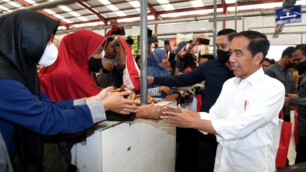 Selain meninjau dan mengecek harga sejumlah kebutuhan pokok, Presiden Jokowi turut menyerahkan sejumlah bantuan sosial kepada para pedagang di Pasar Cepogo, Kabupaten Boyolali.