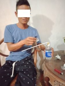 “Saat dilakukan interogasi terhadap terduga dan pemeriksaan dikamar tersebut di ketemukan 1 botol plastik merk pocari yang sudah terakit dengan 2 buah pipet di depan pintu wc. Lalu ditemukan juga 1 buah kotak rokok berisi 1 bungkus plastic bening dan 2 bungkus plastik bening tanpa isi yang tersembunyi dibawah ranjang,” ujarnya.