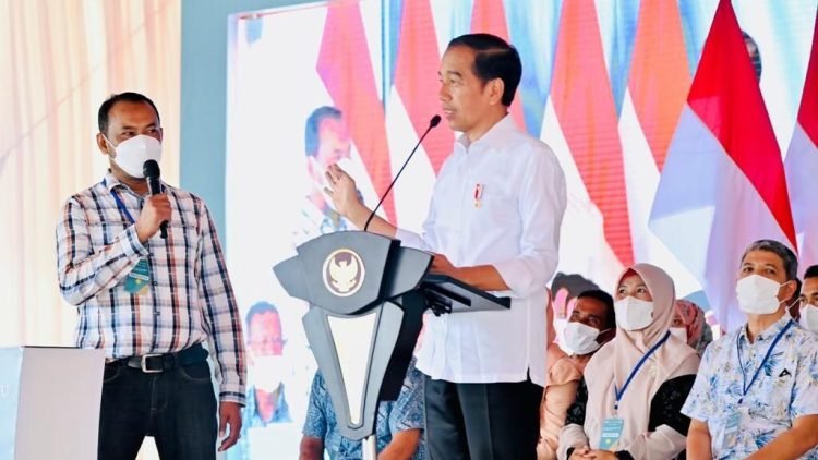 Saat menyerahkan Kredit Usaha Rakyat (KUR) dari Bank Syariah Indonesia (BSI) pada Jumat, 10 Februari 2023 di halaman Stadion PT Pupuk Iskandar Muda (PIM), Kabupaten Aceh Utara, Presiden Joko Widodo berkesempatan untuk berdialog dengan para penerima KUR sekaligus mengingatkan masyarakat untuk bijak dan disiplin setelah mendapatkan pembiayaan KUR.
