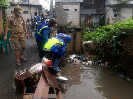 ” Saat ini di lokasi masih dilakukan pembersihan sisa sampah dan lumpur oleh Satgas SDA Kecamatan Kebon Jeruk dan petugas PPSU,”