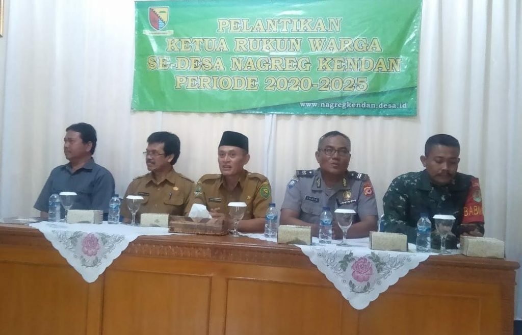 Panit Binmas Polsek Nagreg Polresta Bandung, Polda Jabar, Aiptu E. Nurdin menghadiri acara pelantikan Ketua RW se-Desa Nagreg Kendan masa jabatan tahun 2020-2025, yang dilaksanakan di Aula Kantor Desa Nagreg Kendan, Kecamatan Nagreg, Kabupaten Bandung, Senin (27/01/2020).