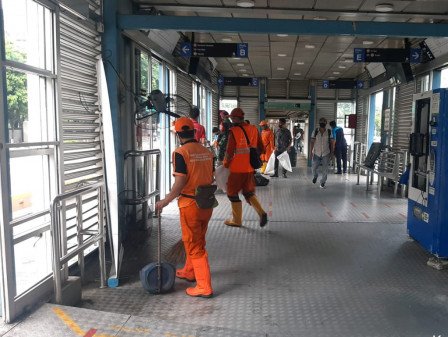 Halte Transjakarta Benhil Sudah Dibersihkan Petugas PPSU Karet Semanggi