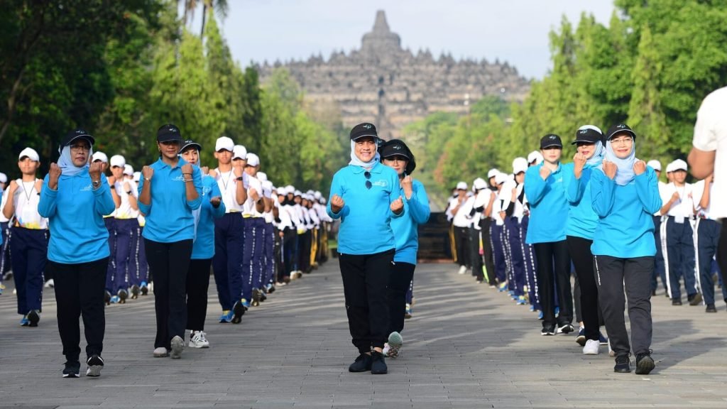 Hari kedua di Kabupaten Magelang, Provinsi Jawa Tengah, Ibu Iriana Joko Widodo dan Ibu Wury Ma’ruf Amin, serta para anggota OASE KIM mengawali pagi dengan melakukan senam sehat bersama para siswa di Kawasan Candi Borobudur, pada Rabu, 1 Februari 2023. Sebanyak 500 siswa yang terdiri atas siswa sekolah menengah pertama (SMP) dan siswa sekolah menengah atas (SMA) hadir untuk berolahraga bersama.