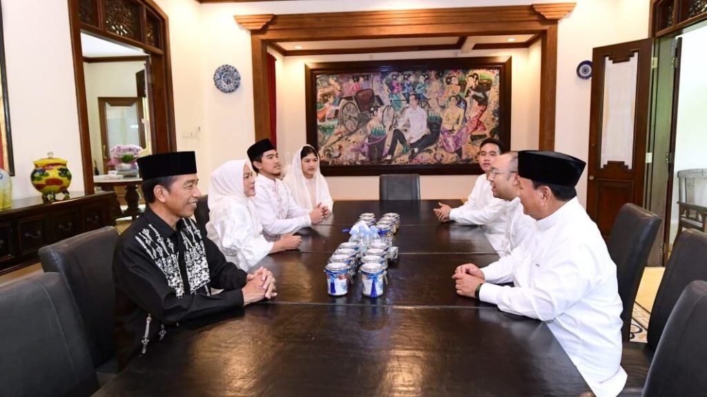 Presiden Joko Widodo kembali bersilaturahmi pada momen Idulfitri 1444 Hijriah pada Sabtu, 22 April 2023. Pada kesempatan ini, Presiden menerima kedatangan Menteri Pertahanan (Menhan) Prabowo Subianto dan putranya, Didit Hediprasetyo, sekitar pukul 12.00 WIB saat berada di kediamannya di Kota Surakarta.