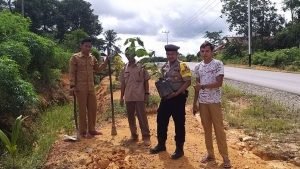 Hijaukan Jalan Desa, Bhabinkamtibmas Sinergi Dengan Masyarakat dan Pemdes Tanam Pohon