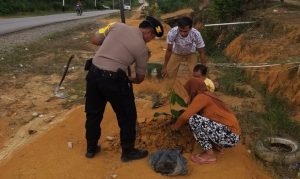 Humas.polri.go.id – Polres Kobar –  Bhabinkamtibmas Polsek Kotawaringin Lama (Kolam) jajaran Polres Kotawaringin Barat (Kobar), Polda Kalteng Briptu Deni Andrian bersinergi dengan pemerintah Desa Palih Baru dan masyarakat untuk menanam pohon.