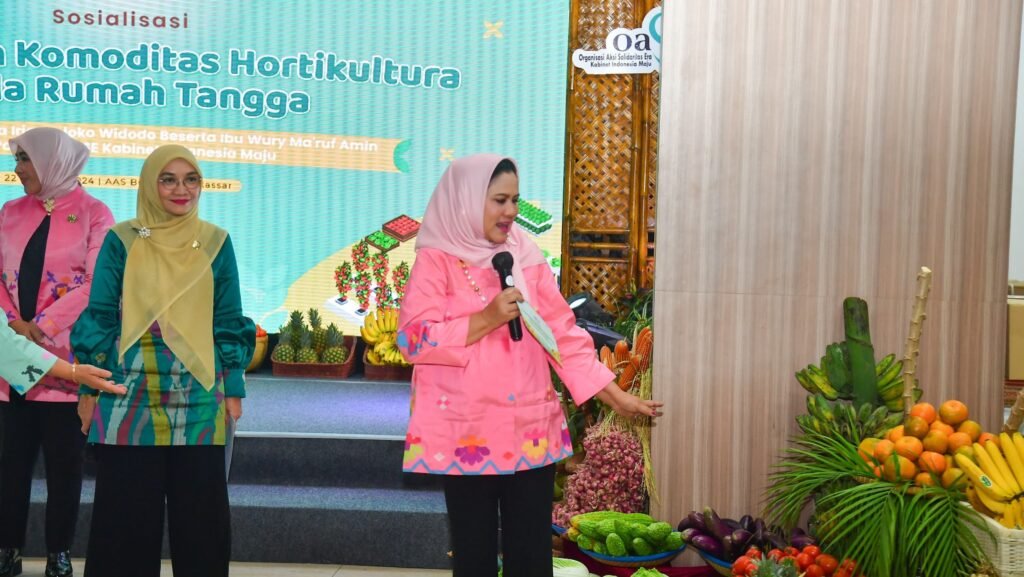 Dalam rangkaian kunjungan kerjanya ke Provinsi Sulawesi Selatan, Ibu Iriana Joko Widodo dan Ibu Wury Ma’ruf Amin bersama para anggota Organisasi Aksi Solidaritas Era Kabinet Indonesia Maju (OASE KIM) menghadiri sosialisasi pengelolaan komoditas hortikultura skala rumah tangga. Kegiatan ini diselenggarakan pada Kamis, 22 Agustus 2024 di AAS Building, Kota Makassar.