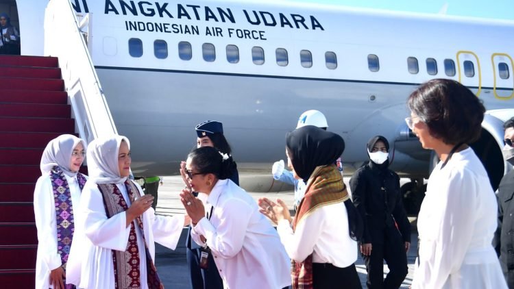 Ibu Iriana Joko Widodo bersama Ibu Wury Ma’ruf Amin dan sejumlah anggota Organisasi Aksi Solidaritas Era Kabinet Indonesia Maju (OASE KIM) bertolak menuju Provinsi Bali pada Jumat, 9 Juni 2023. Pesawat Boeing TNI AU 737-400 yang membawa Ibu Iriana dan rombongan tiba di Bandar Udara Internasional I Gusti Ngurah Rai, Kabupaten Badung sekitar pukul 09.10 WITA.