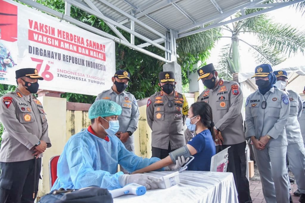 Kepala Korps Lalu Lintas (Kakorlantas) Polri, Irjen Istiono melakukan pengecekan ihwal vaksinasi yang ada di Polres Manado, Sulawesi Utara. Dia mengatakan, ada 200 vaksin yang diberikan kepada para pelaku yang berkecimpung di bidang transportasi.