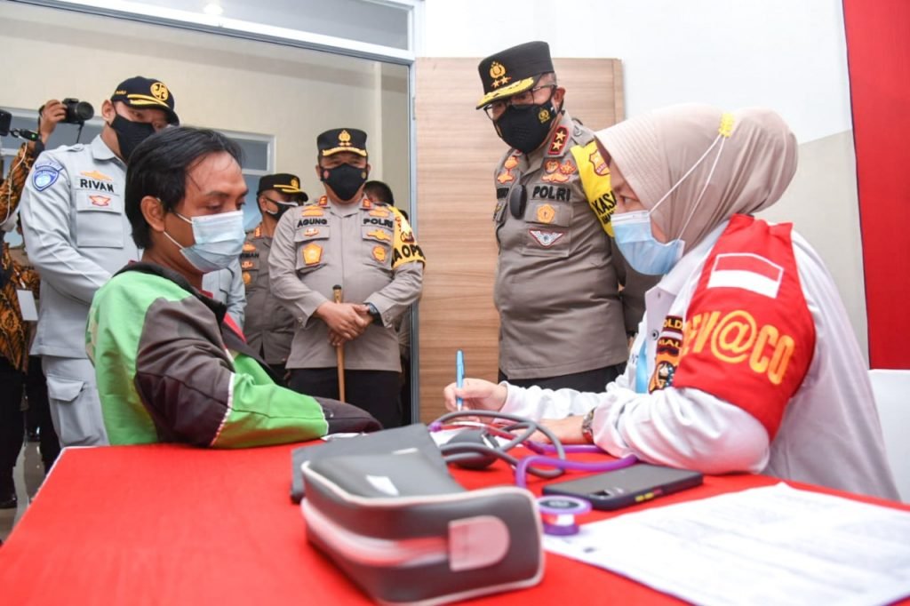 Batam – Kepala Korp Lalu Lintas (Kakorlantas) Polri Irjen Istiono meninjau langsung vaksinasi untuk para pengendara motor dan juga pengemudi ojek online di wilayah Batam, Kepulauan Riau.