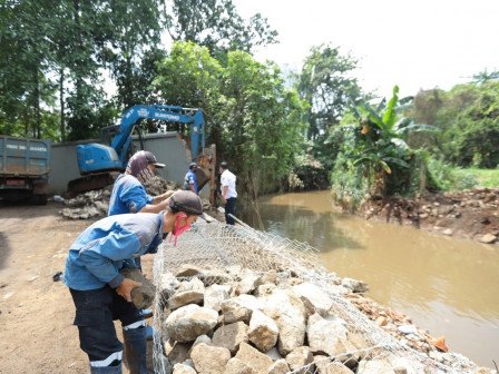 Kepala Seksi Pemeliharaan Drainase Sudin SDA Jakarta Selatan, Junjung mengatakan, pemasangan bronjong batu dan tembok di lokasi tersebut dilakukan 15 personel Satpel SDA Kecamatan Mampang Prapatan sejak 19 Februari lalu.