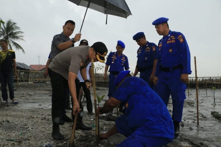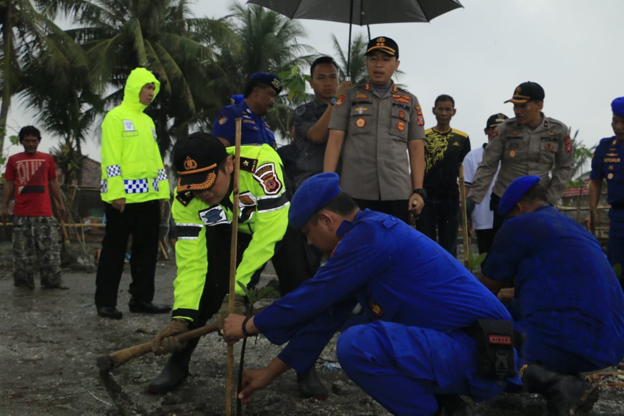 Kapolres Karawang AKBP Arif Rachman Arifin SiK. MH, pimpin giat penanaman pohon bako bako dalam rangka hari Sejuta Pohon se-Dunia tahun 2020, bertempat di pesisir pantai Desa Ciparagejaya Kec. Tempuran Kab. Karawang, Kamis (9/1/2020) Sore.